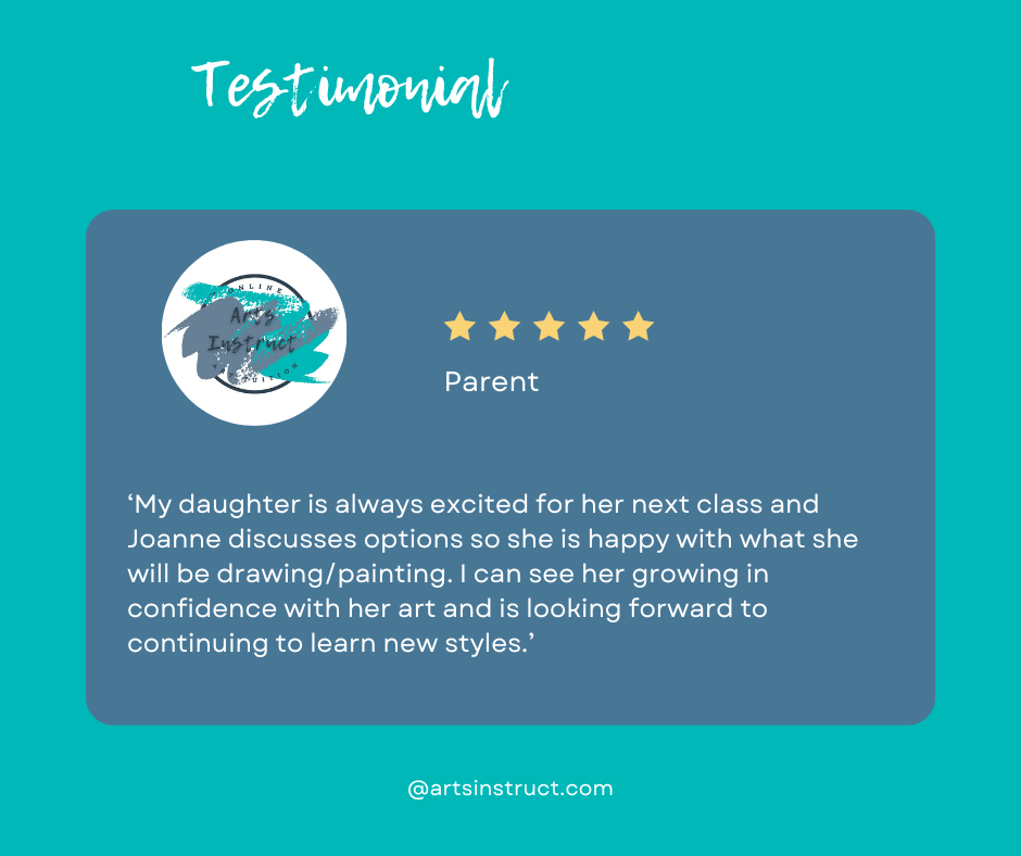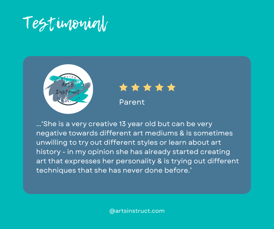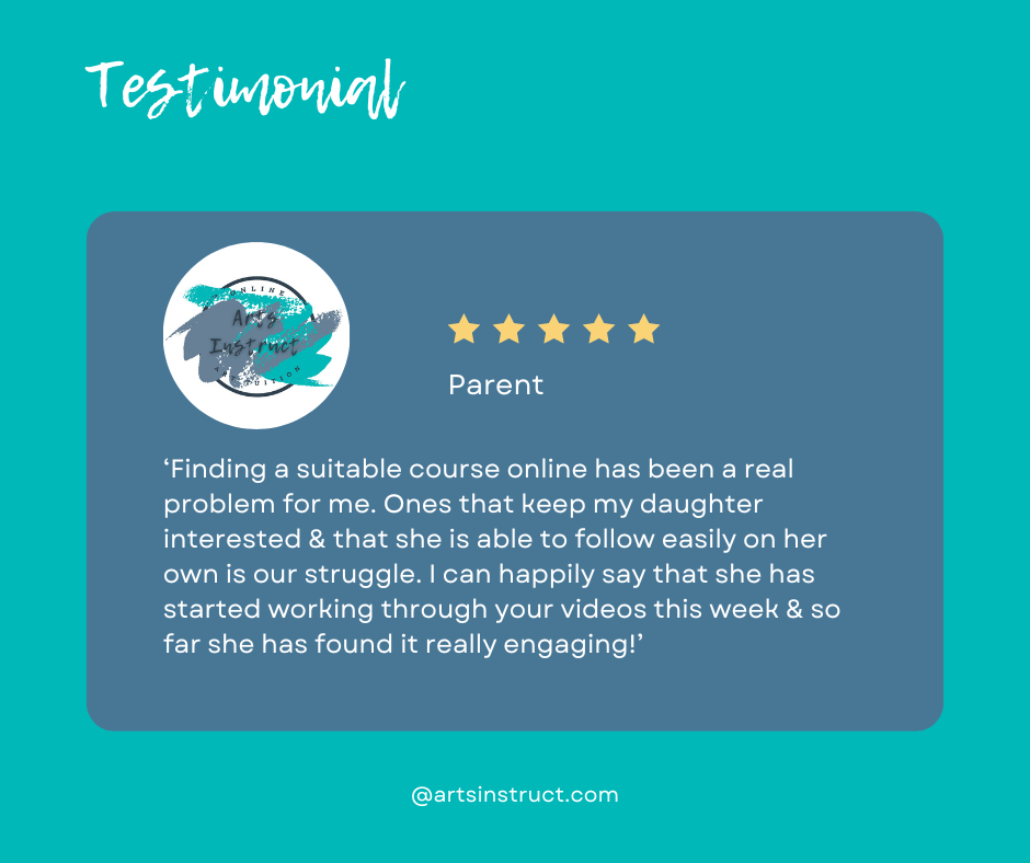 Arts Instruct is an online art membership for students aged 11–14,